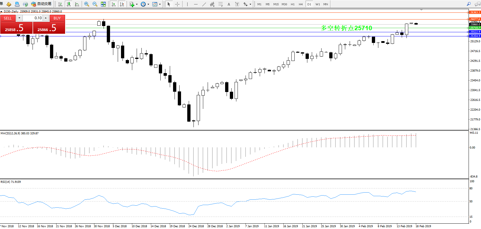 交易策略:25710上方看涨,目标26077、26363