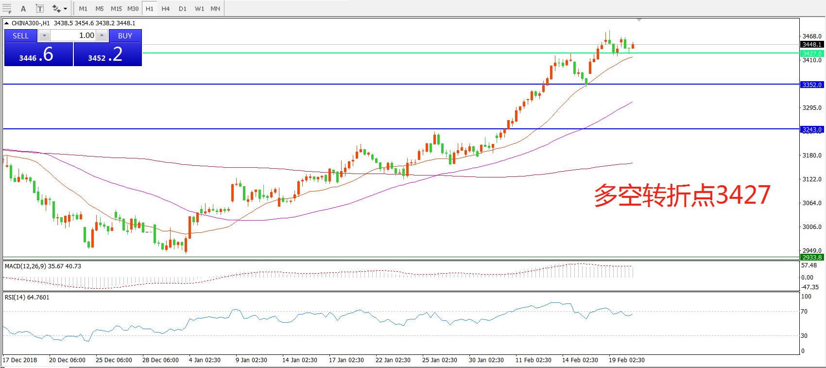 多空转折点:3427.00