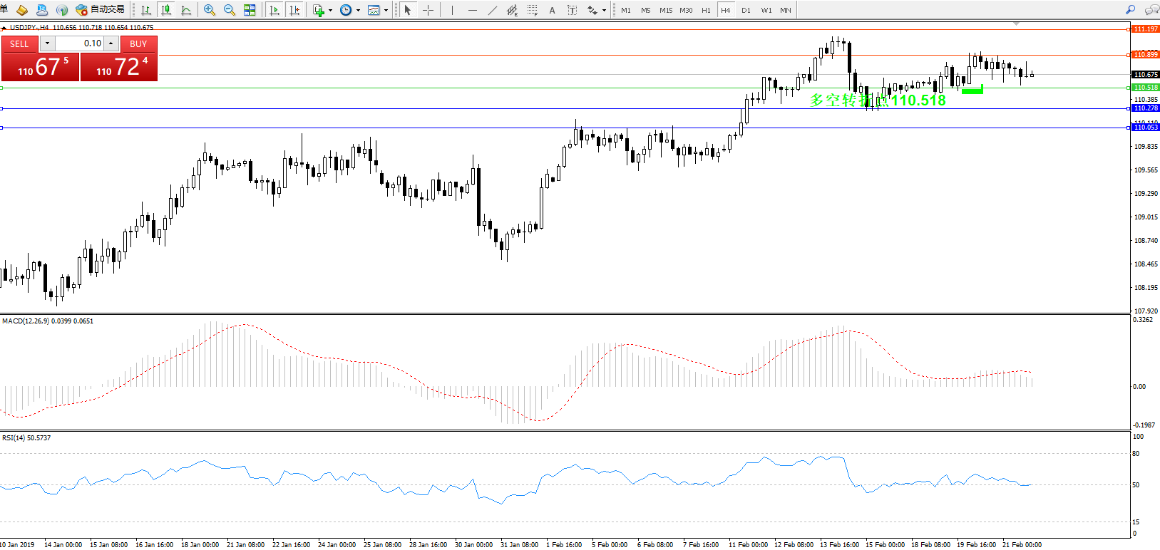 交易策略:110.518上方看涨,目标110.899、111.197