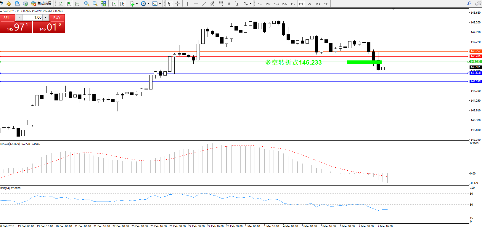 交易策略:146.233下方看跌,目标145.650145.245