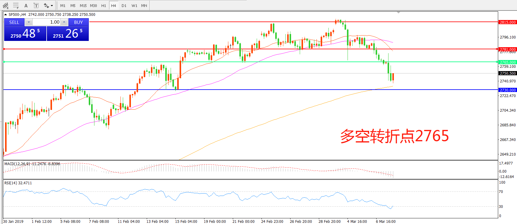 交易策略:在2765之下看跌,目标2730 2685