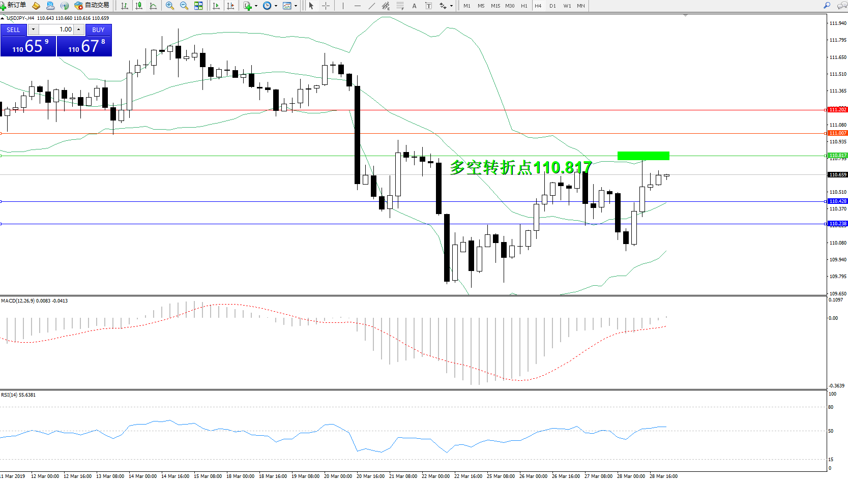交易策略:110.817下方看跌,目标110.428、110.238