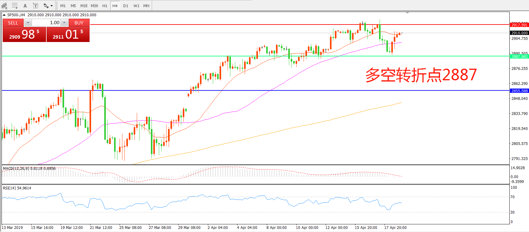 多空转折点:2887.50
