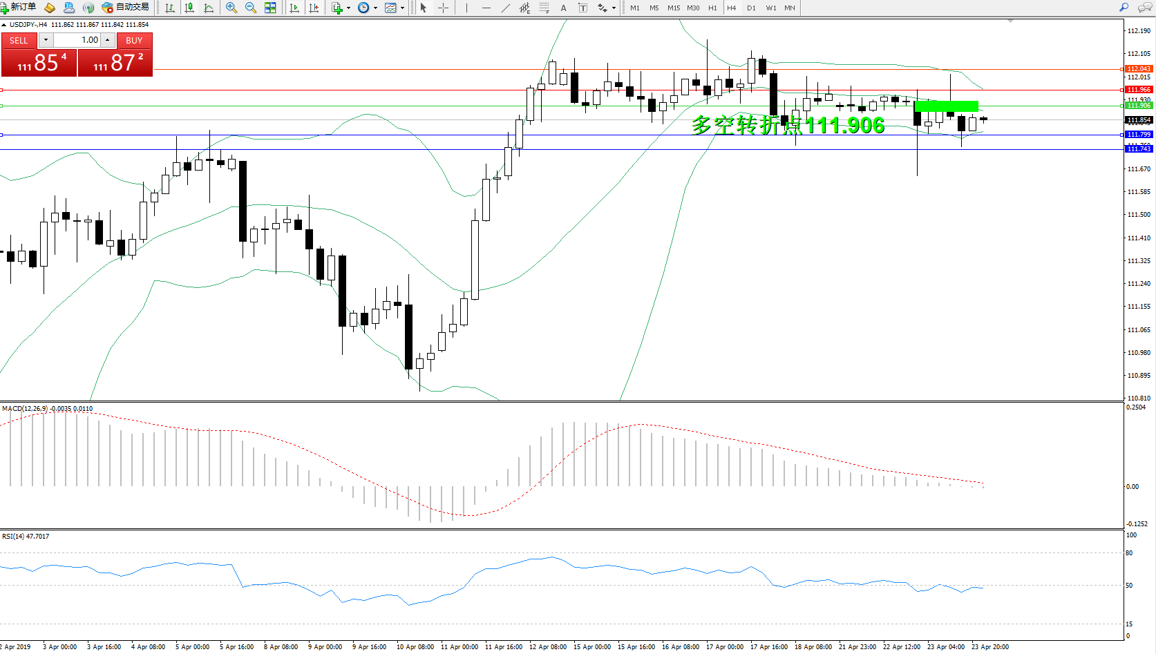 交易策略:111.906下方看跌,目标111.799111.743