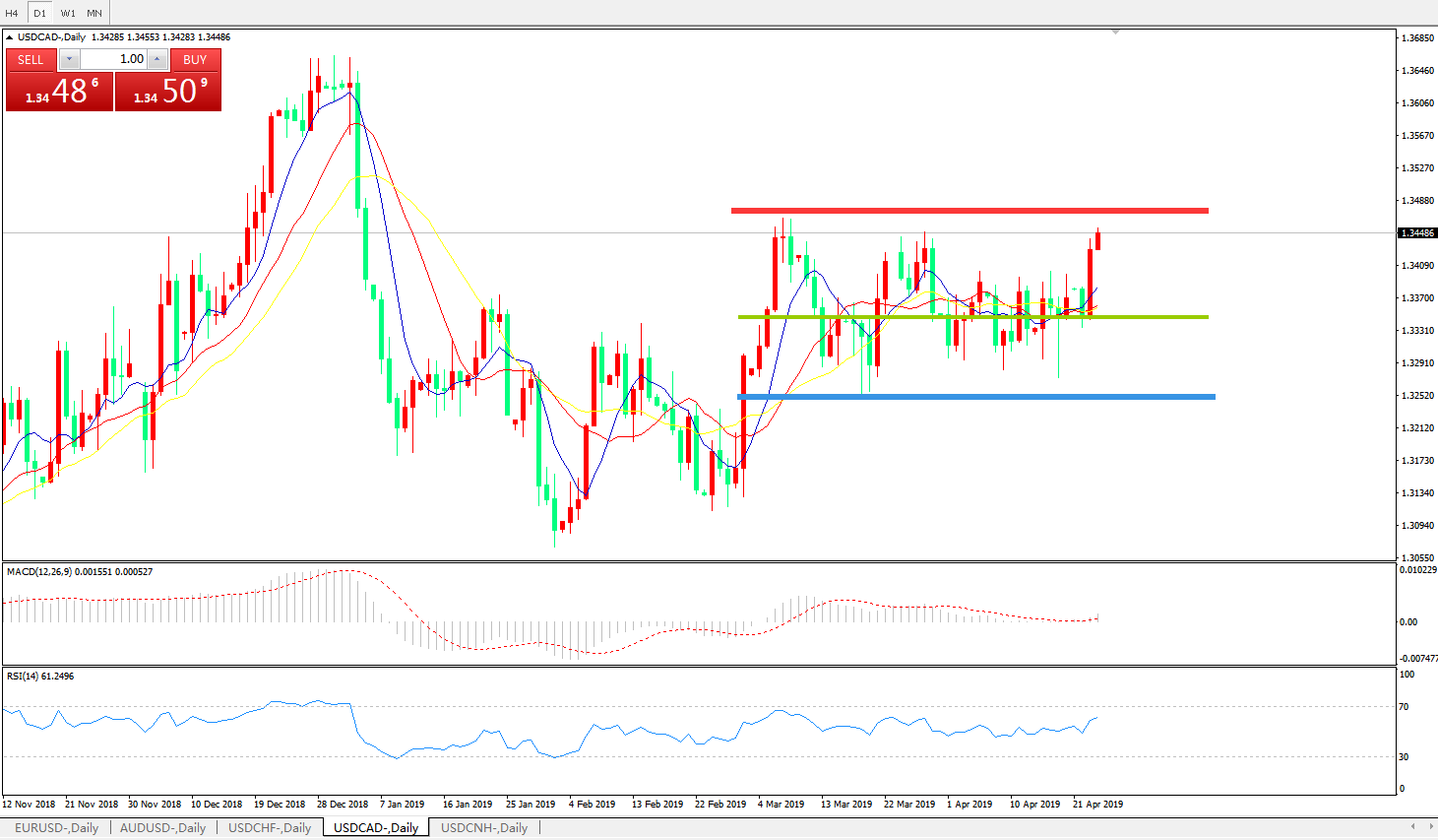 美元兑加元USDCAD 日线图:
