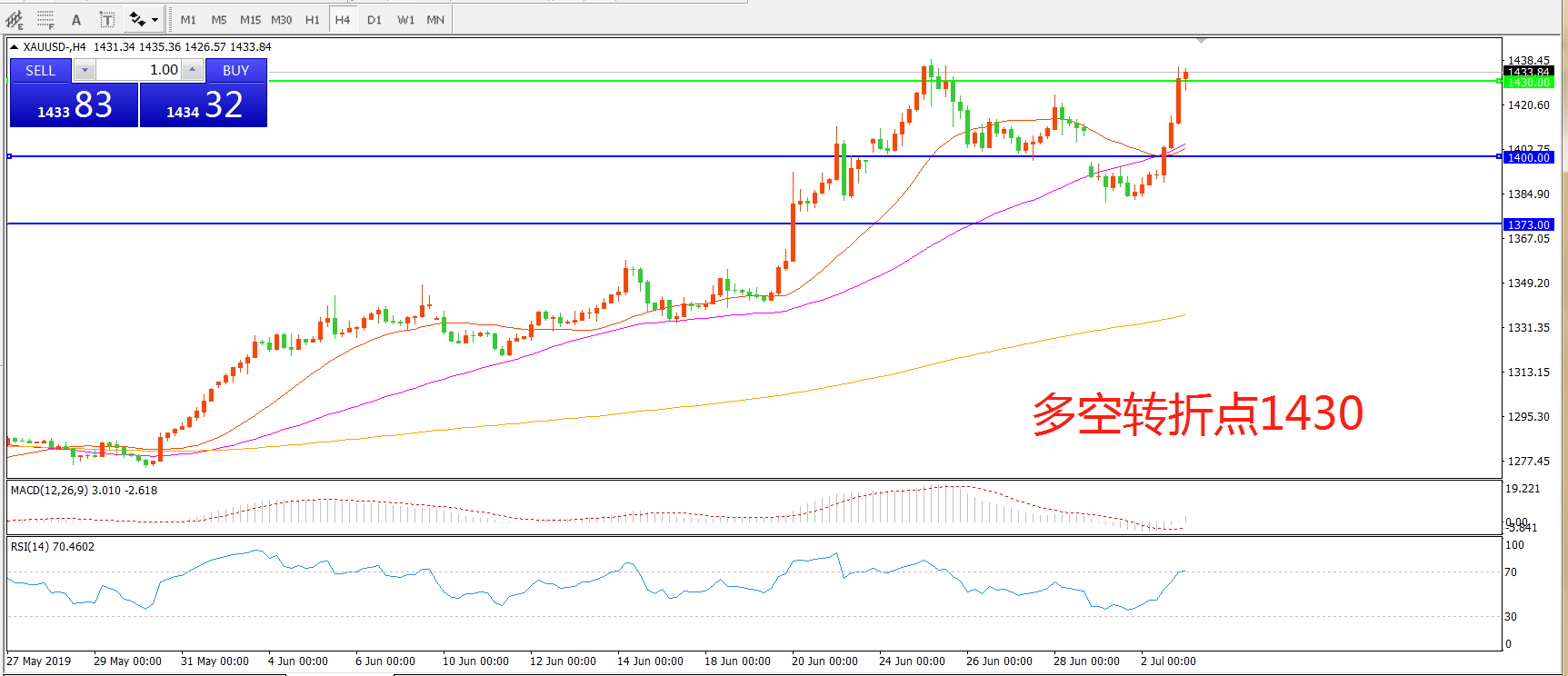 多空转折点:1430.00