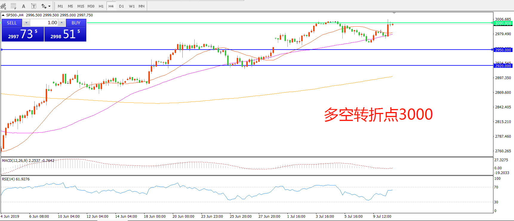 多空转折点:3000.00
