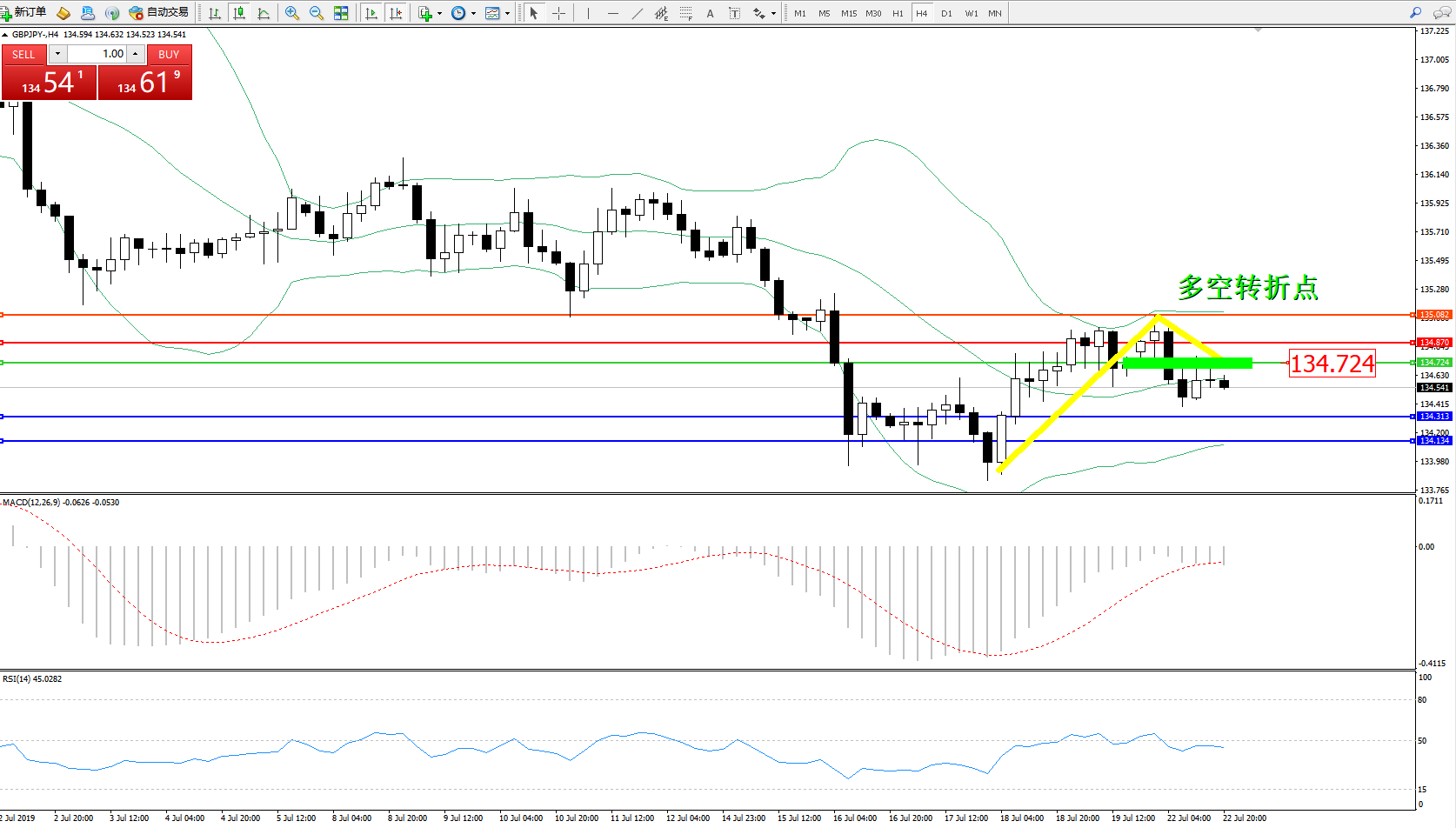 交易策略:134.724下方看跌,目标134.313、134.134