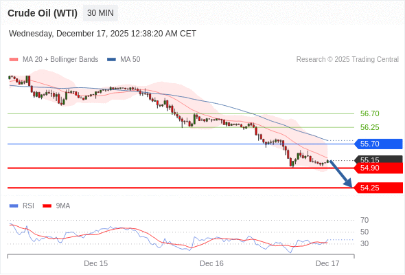 在 55.70 之下,看跌,目标价位为 54.90 ,然后为 54.25 。