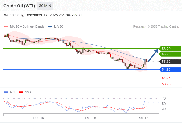 在 54.95 之上,看涨,目标价位为 56.25 ,然后为 56.70 。