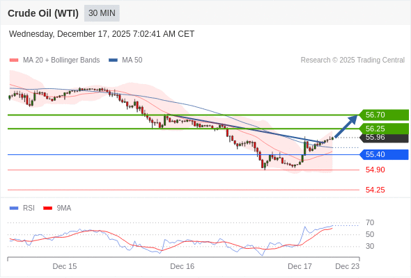 在 55.40 之上,看涨,目标价位为 56.25 ,然后为 56.70 。
