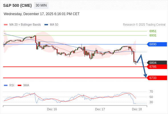 在 6890 之下,看跌,目标价位为 6785 ,然后为 6733 。