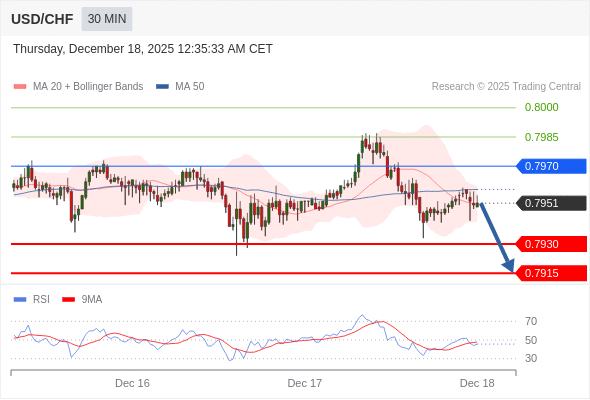 在 0.7970 之下,看跌,目标价位为 0.7930 ,然后为 0.7915 。