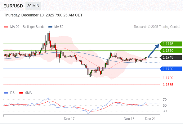 在 1.1720 之上,看涨,目标价位为 1.1760 ,然后为 1.1775 。