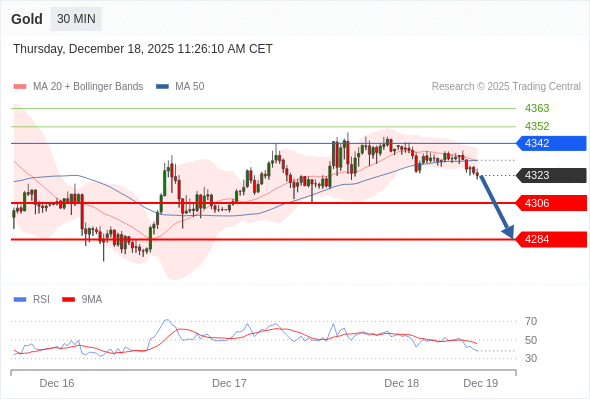 在 4342 之下,看跌,目标价位为 4306 ,然后为 4284 。