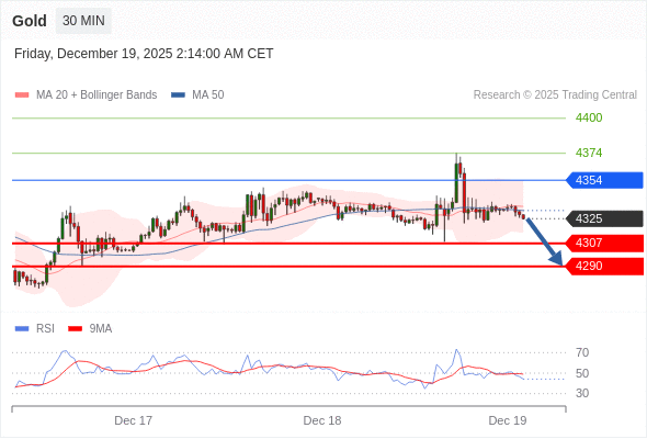在 4354 之下,看跌,目标价位为 4307 ,然后为 4290 。