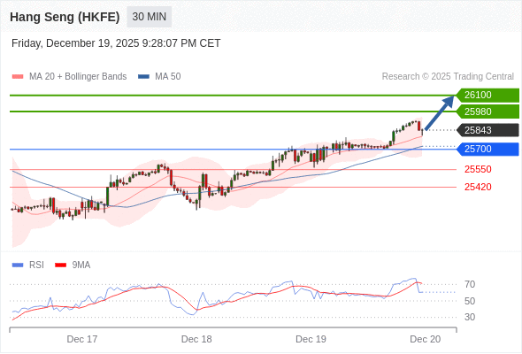 在 25700 之上,看涨,目标价位为 25980 ,然后为 26100 。