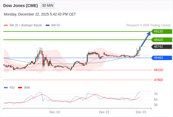 在 48460 之上,看涨,目标价位为 48920 ,然后为 49130 。