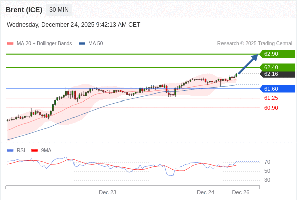 在 61.60 之上,看涨,目标价位为 62.40 ,然后为 62.90 。