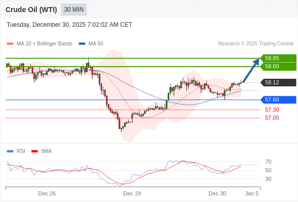 在 57.60 之上,看涨,目标价位为 58.60 ,然后为 58.85 。