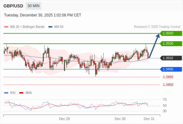 在 1.3480 之上,看涨,目标价位为 1.3530 ,然后为 1.3550 。