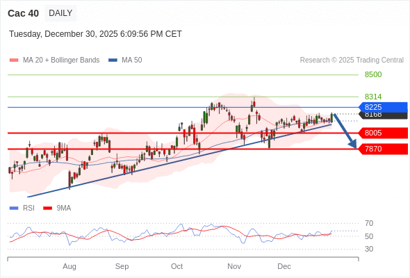 在 8225 之下,看跌,目标价位为 8005 ,然后为 7870 。