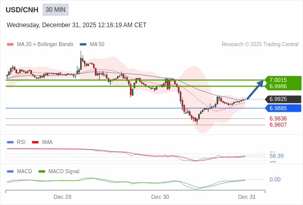 替代方案: 在6.9885以下,期待6.9836和6.9807。