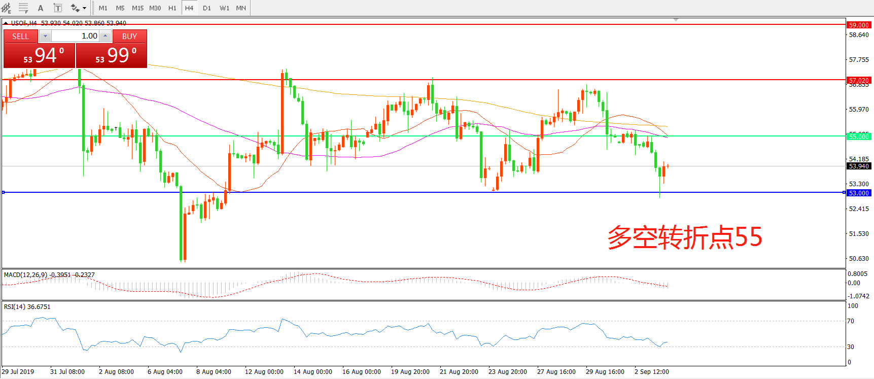 交易策略:在55.00之下看跌,目标53.00   49.00