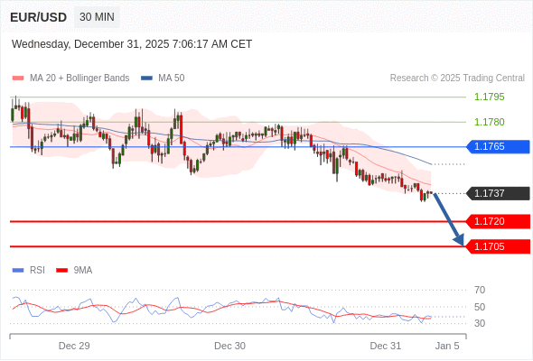 在 1.1765 之下,看跌,目标价位为 1.1720 ,然后为 1.1705 。