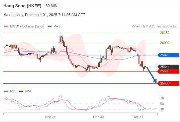 交易策略: 在 25820 之下,看跌,目标价位为 25580 ,然后为 25400 。