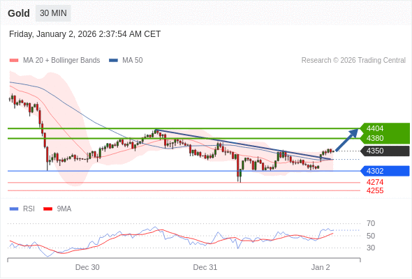 在 4302 之上,看涨,目标价位为 4380 ,然后为 4404 。