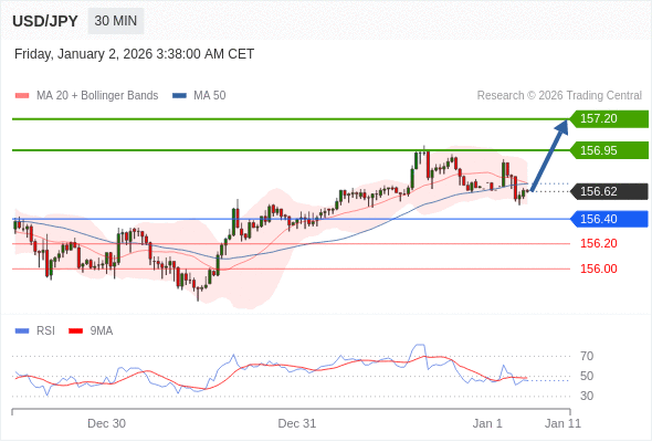 在 156.40 之上,看涨,目标价位为 156.95 ,然后为 157.20 。