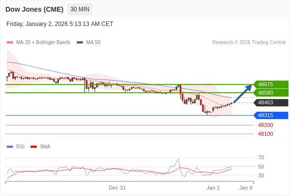 在 48315 之上,看涨,目标价位为 48580 ,然后为 48675 。