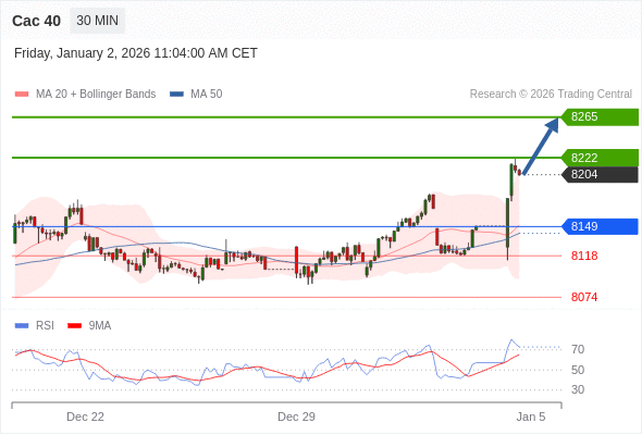 在 8149 之上,看涨,目标价位为 8222 ,然后为 8265 。