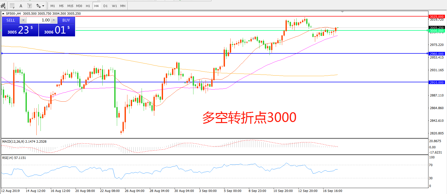 多空转折点:3000.00