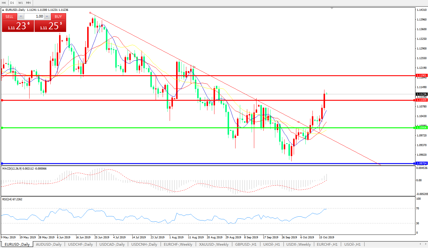 交易策略:1.1000上方看涨,目标1.1100、1.1190