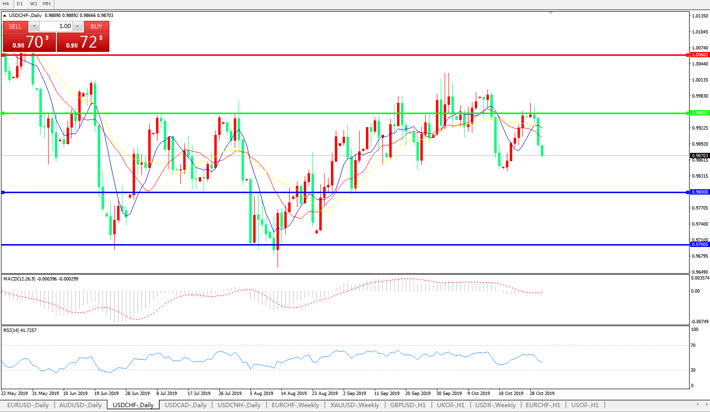 交易策略:0.9950下方看跌,目标0.98000.9700