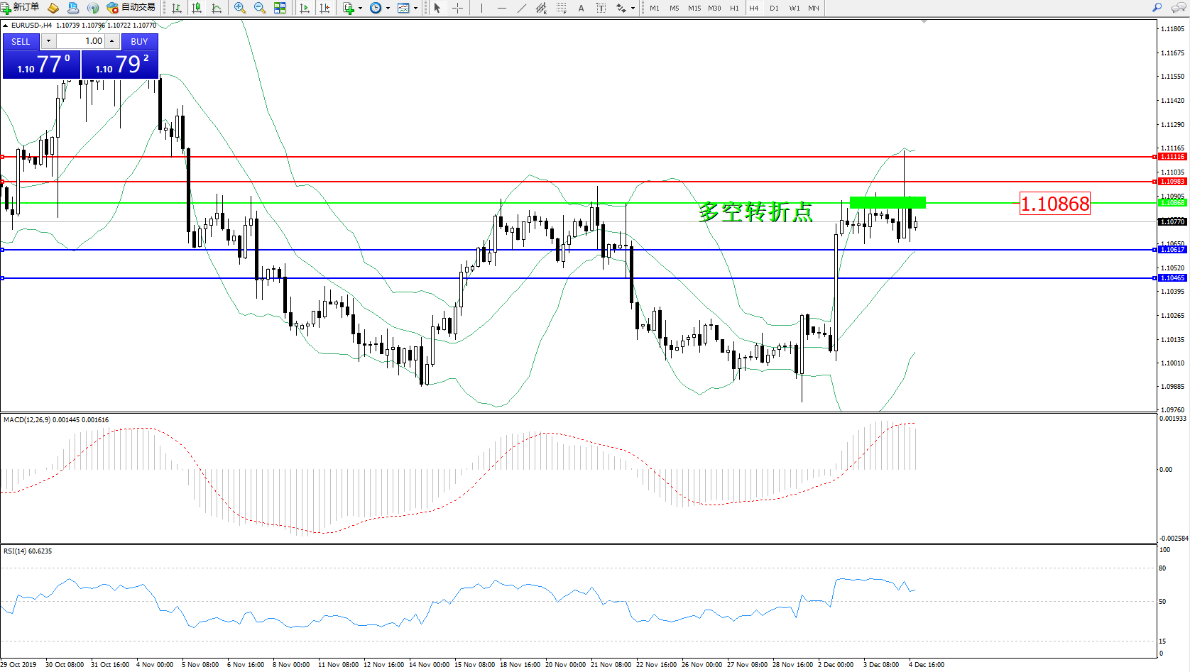 欧元美元EURUSD——4小时K线图显示: