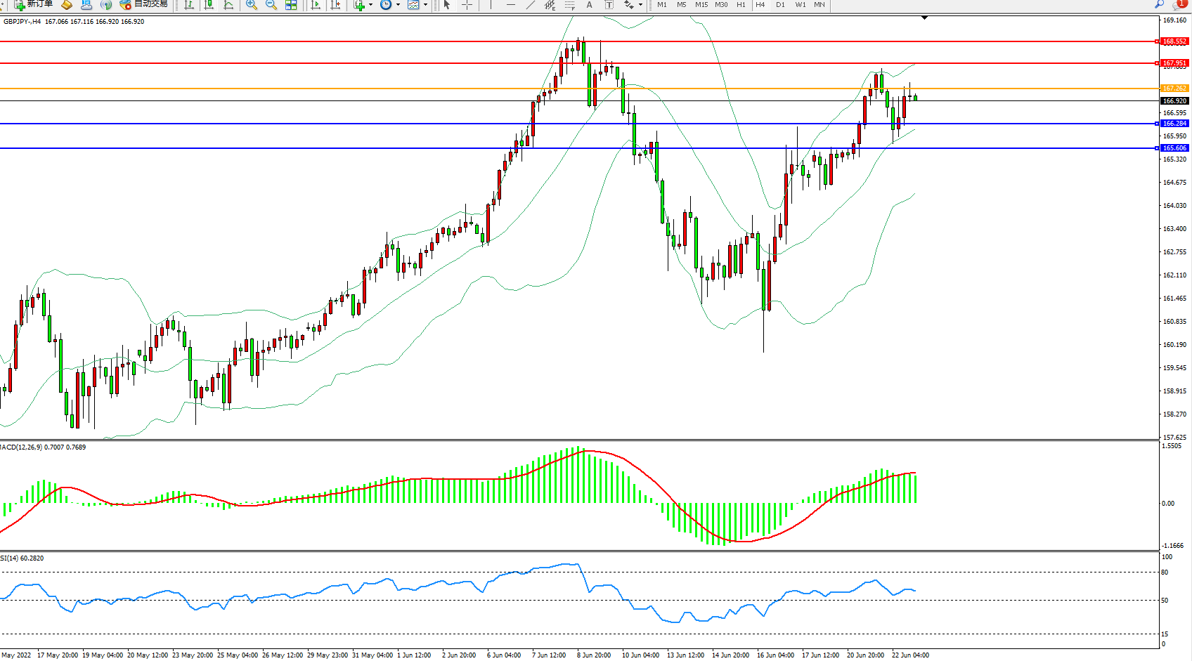 备选策略:167.262上方看涨,目标167.951、168.552