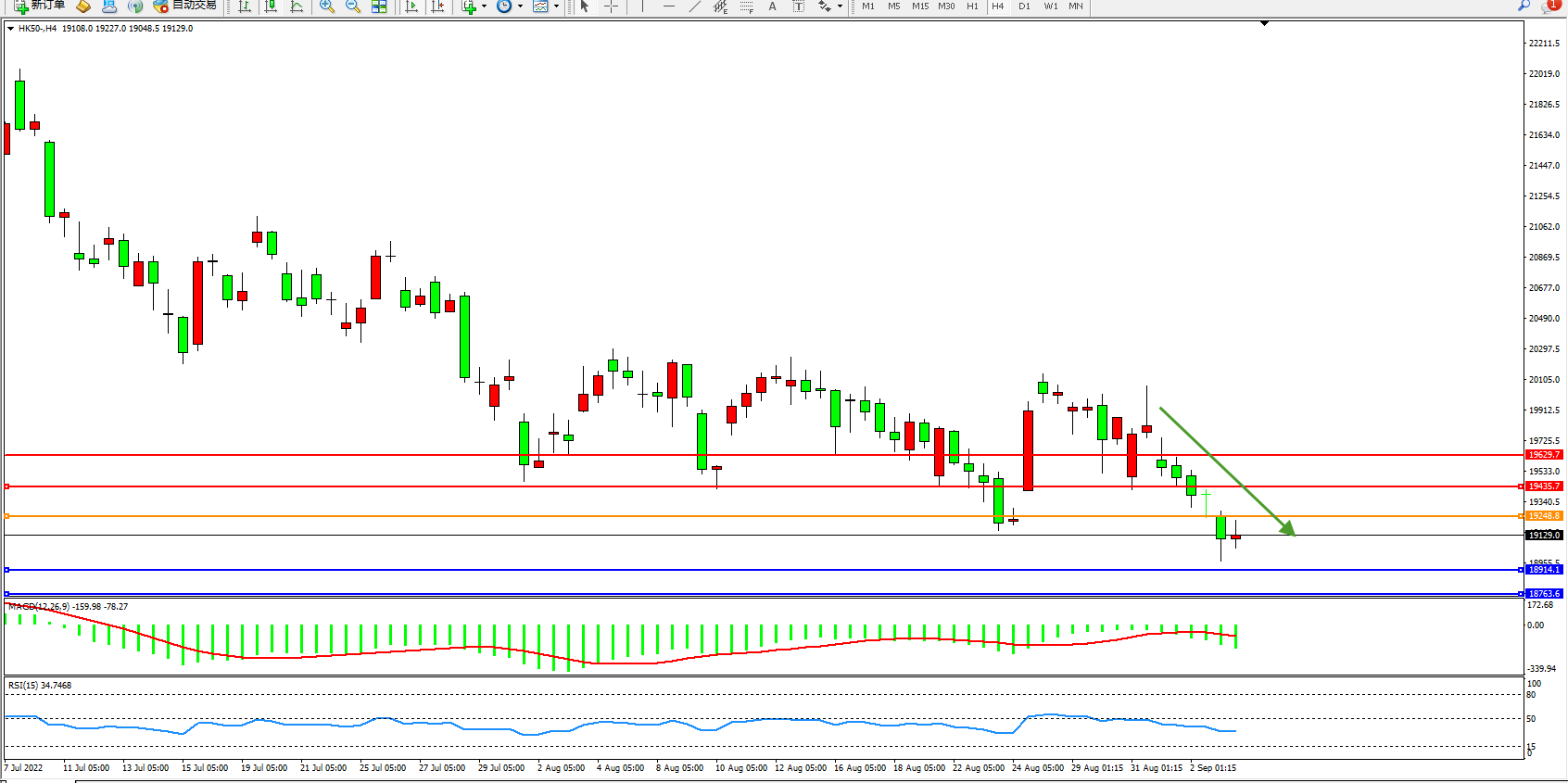 恒指HK50 4小时图