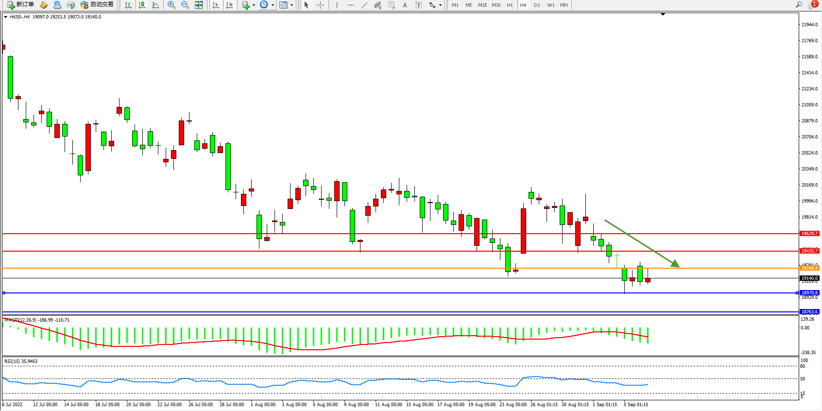 恒指HK50 4小时图