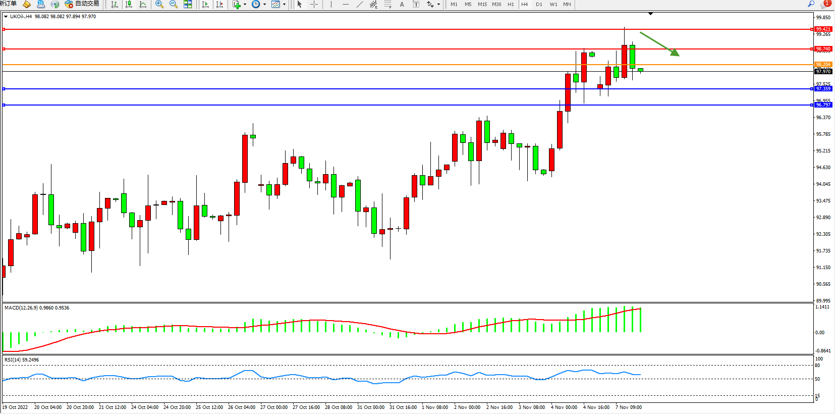 布油UKOil——4小时K线图显示:
