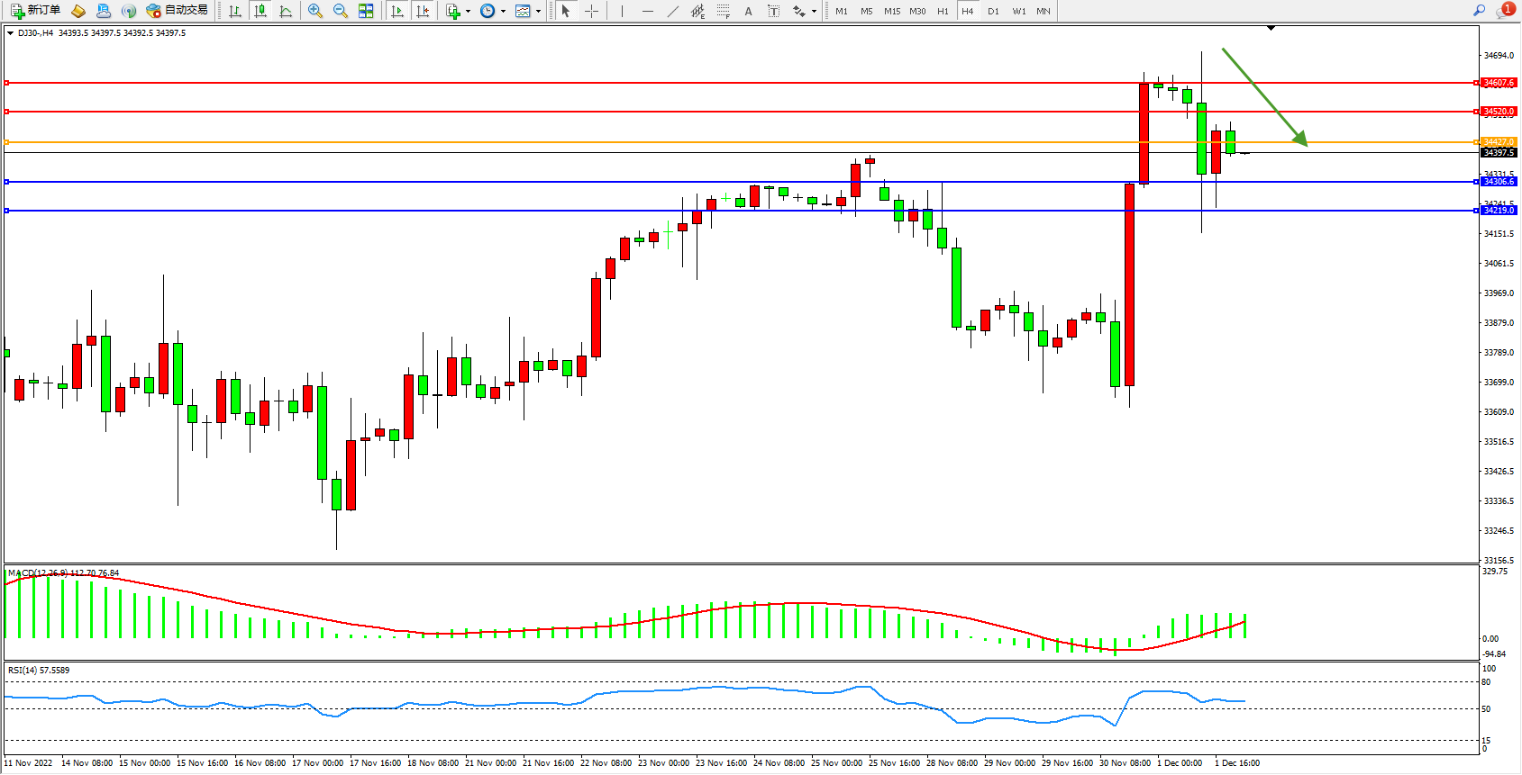 道琼斯指数12月1日(周四)收盘下跌194.69点,跌幅0.56%,报34395.08点;美国申请失业救济人数下降,而持续申请失业救济人数上升至2月份以来的最高水平,这表明在逐渐降温的劳动力市场中,失去工作的美国人更难找到新工作。