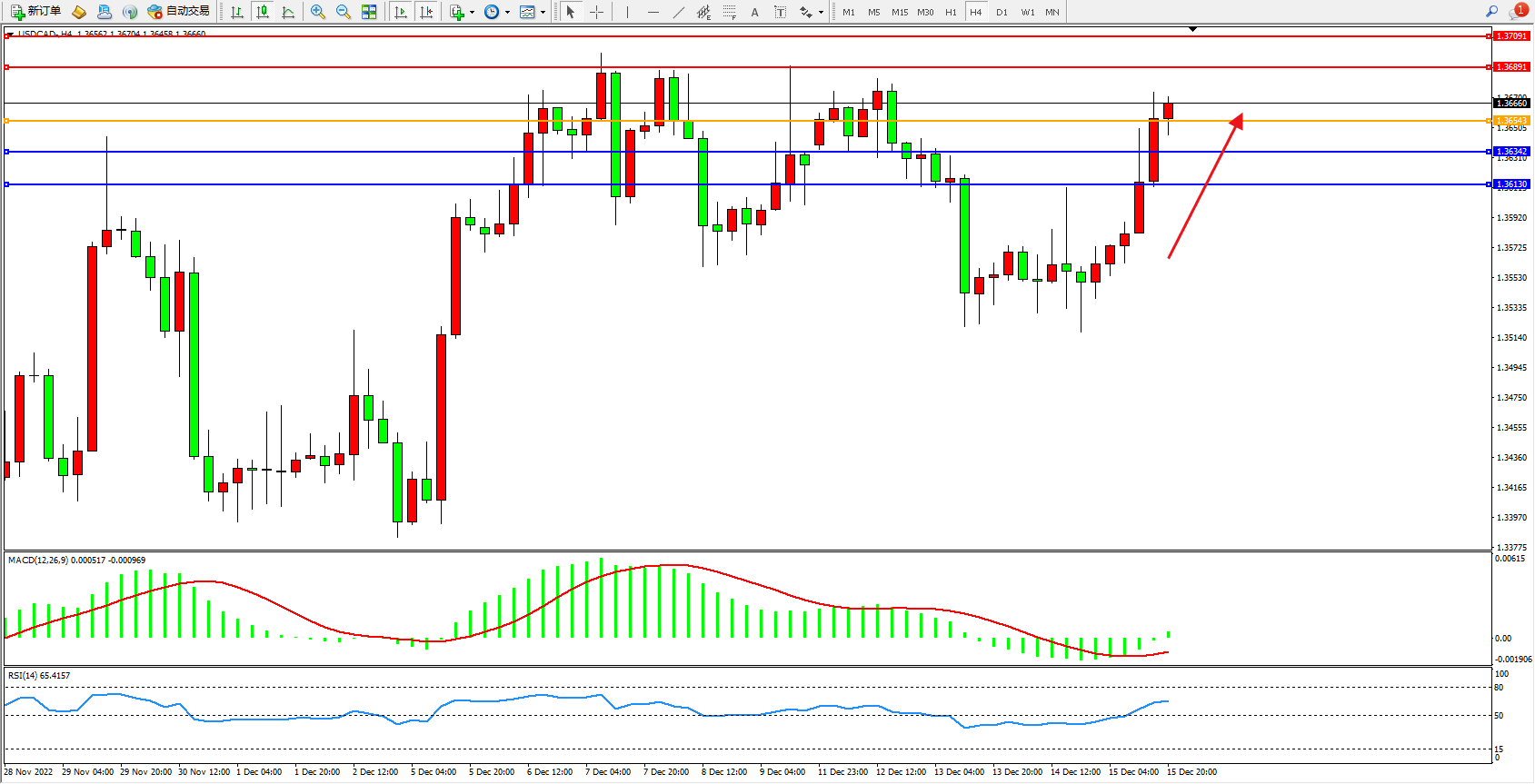 4小时图看:多头动力强势拉升上扬,短期看涨情绪持续,市场多头不断攀升,MACD指标处于0轴线上側上移,RSI指标处于50均衡线上側上扬;