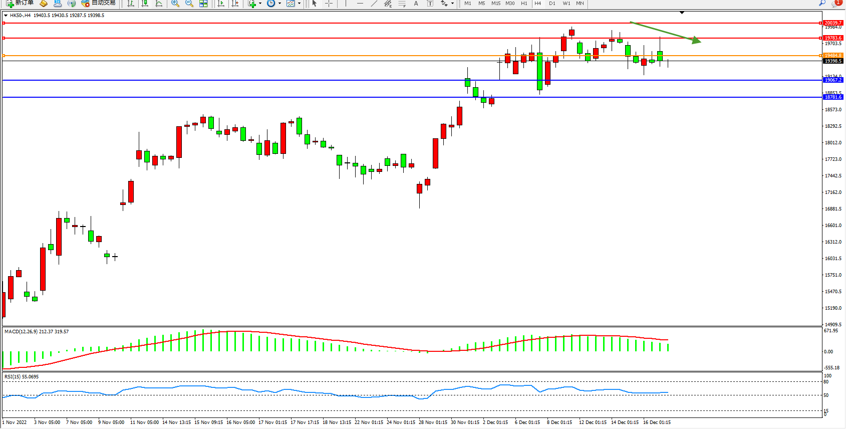 恒指HK50 4小时图