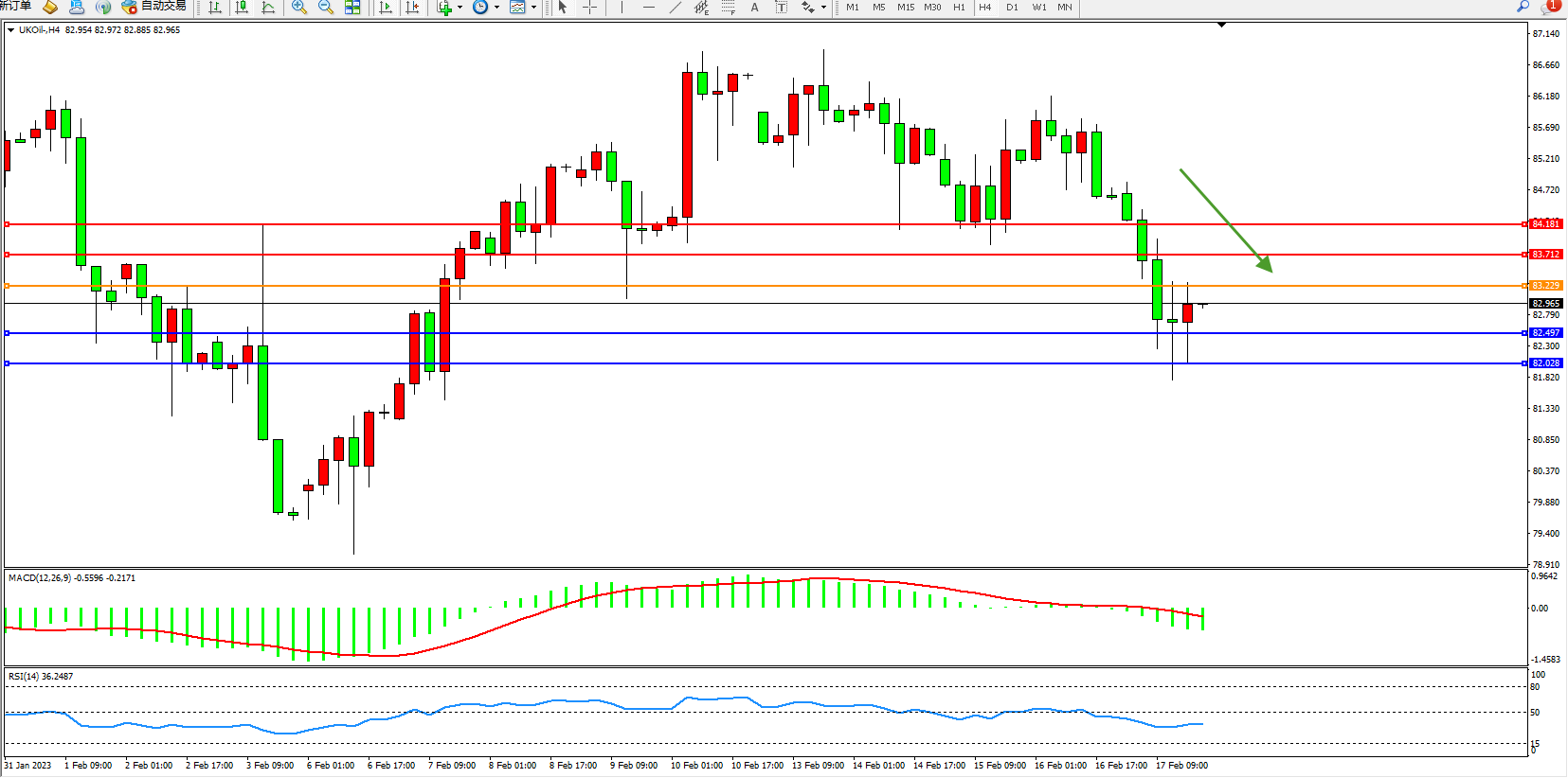 布油UKOil——4小时K线图显示: