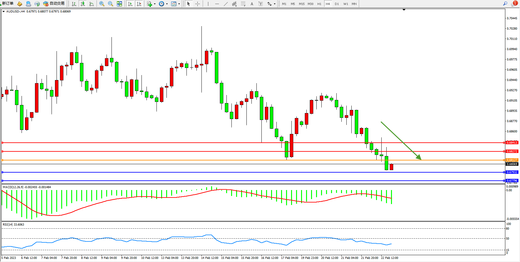 交易策略:0.68127下方看跌,目标0.67932、0.67796