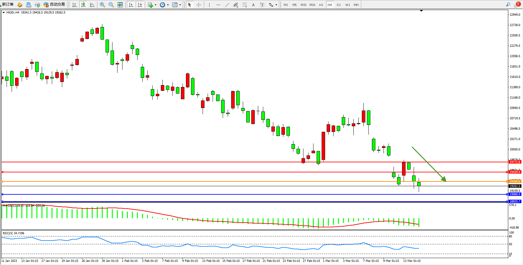 恒指HK50 4小时图