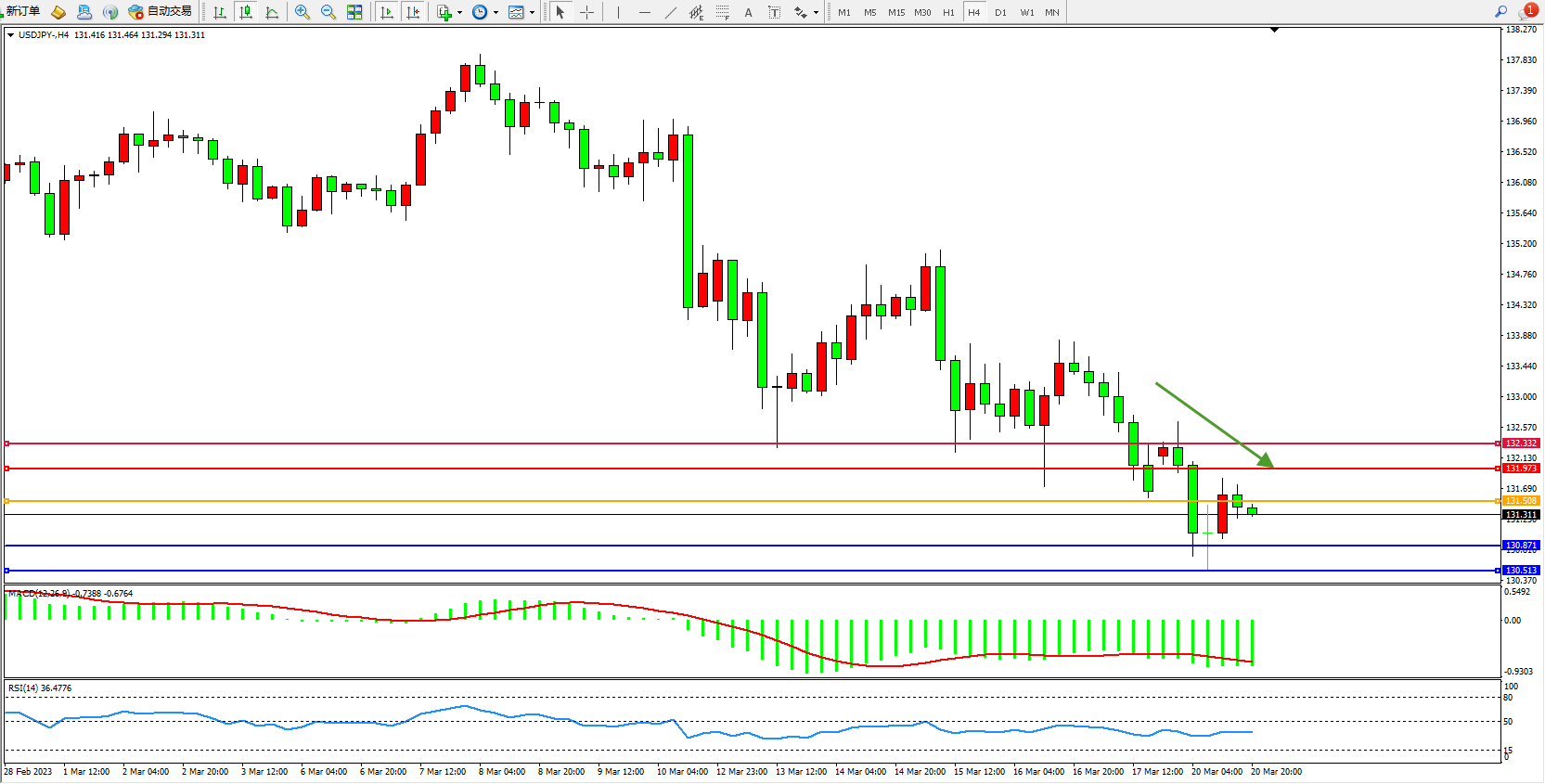 交易策略:131.508下方看跌,目标130.871  130.513