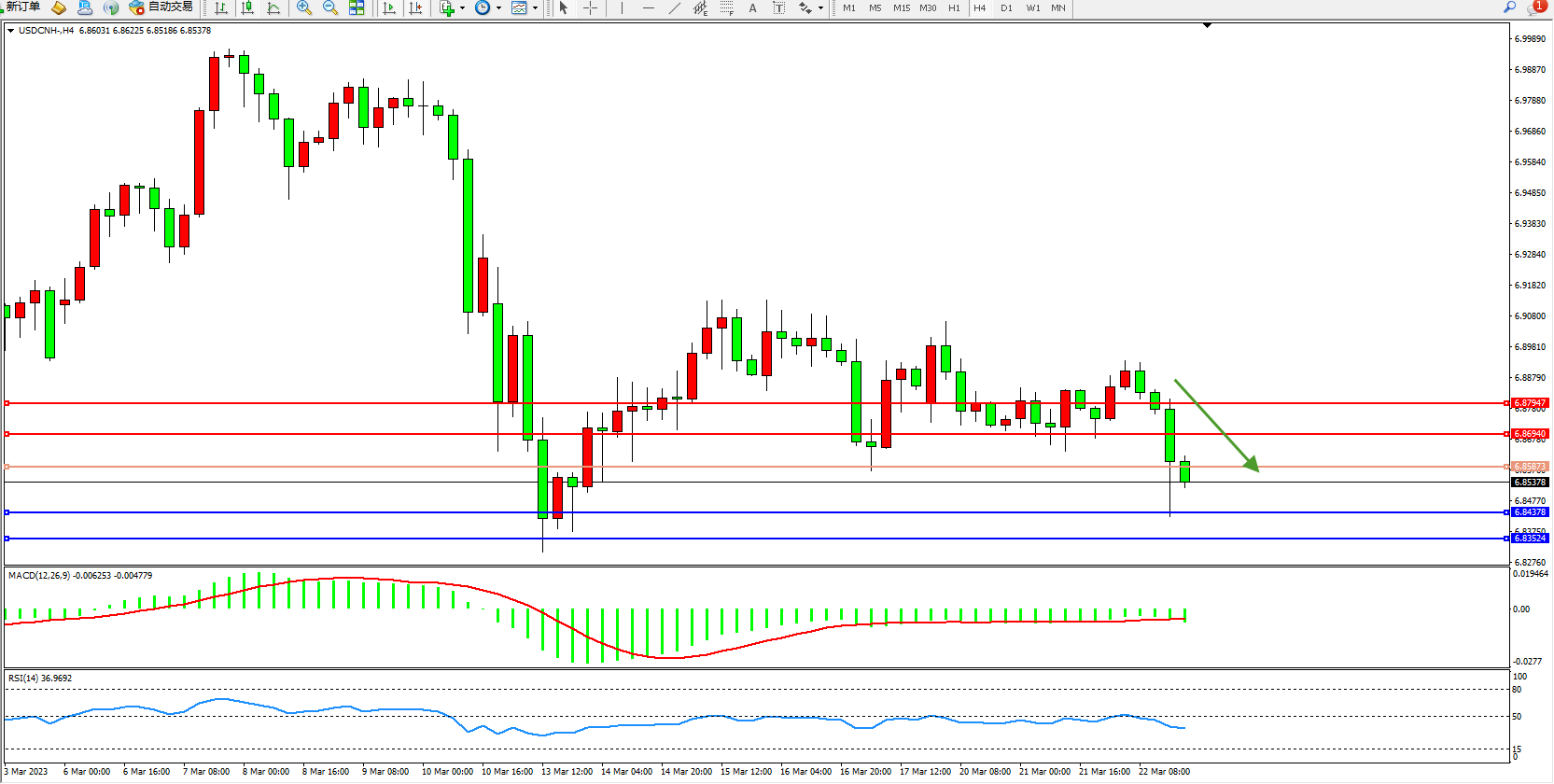 交易策略:6.85873下方看跌,目标6.84378 6.83524